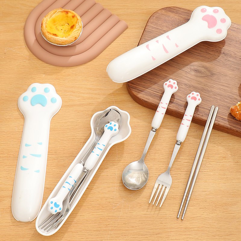 儿童便携餐具 一人用筷勺套装 筷子勺子套装 学生餐具三件套餐具套装