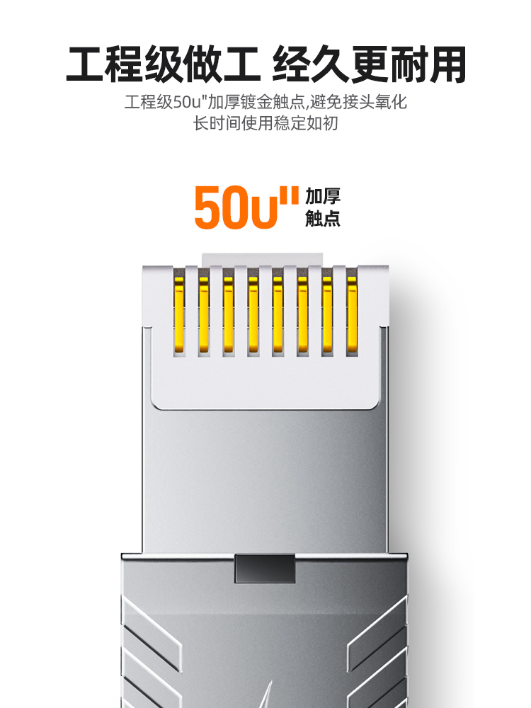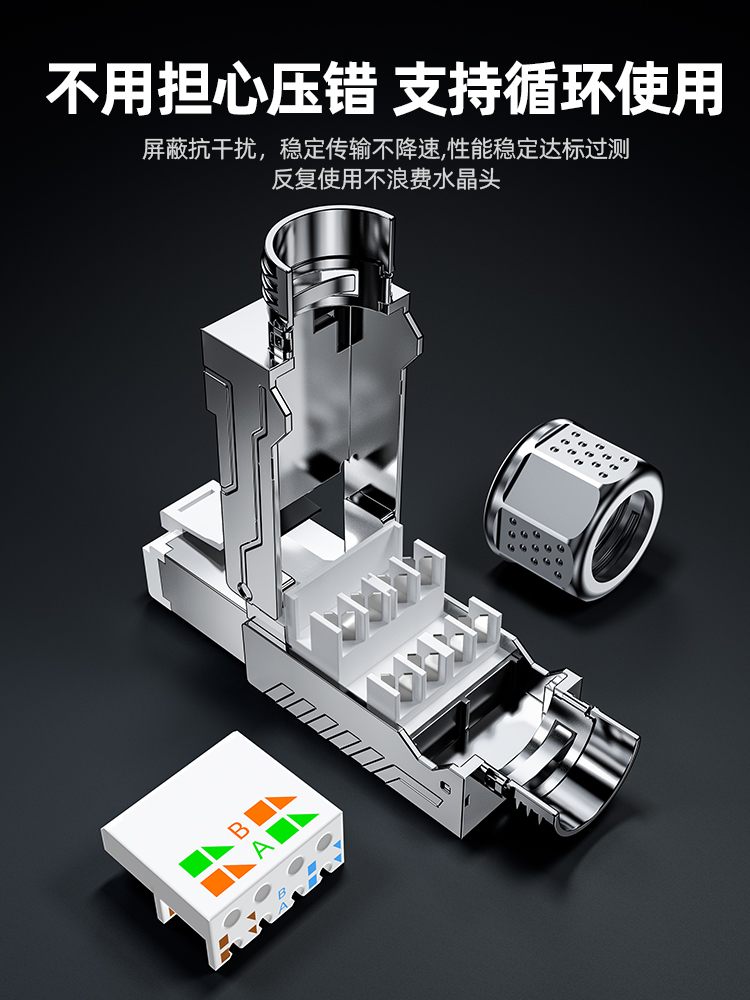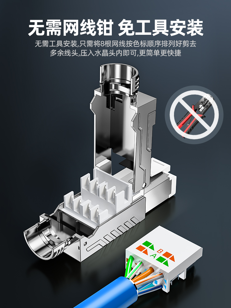 山泽七类免压接水晶头超六67八类万兆profinet网络免打工具压网线