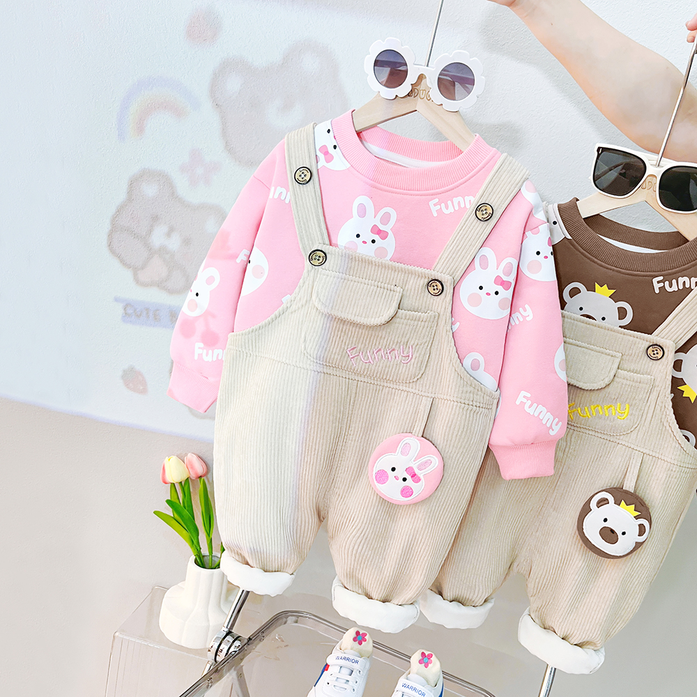 一岁男童冬装 宝宝背带裤 衣服婴儿潮童装 帅气儿童冬季 秋冬加绒套装