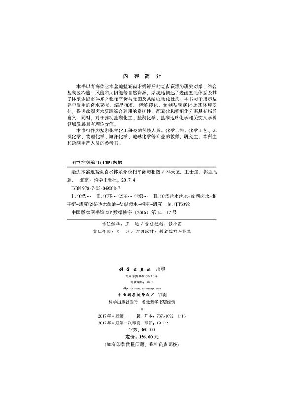 柴达木盆地盐湖卤水体系介稳相平衡与相图