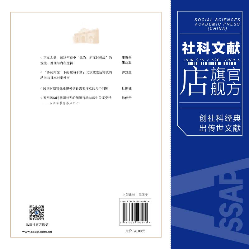 主编 202209 2020年秋季 官方正版 社 社会科学文献出版 朱庆葆 总第38辑 号 民国研究 现货