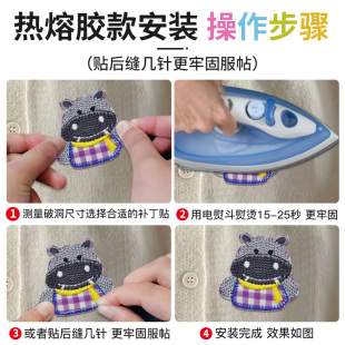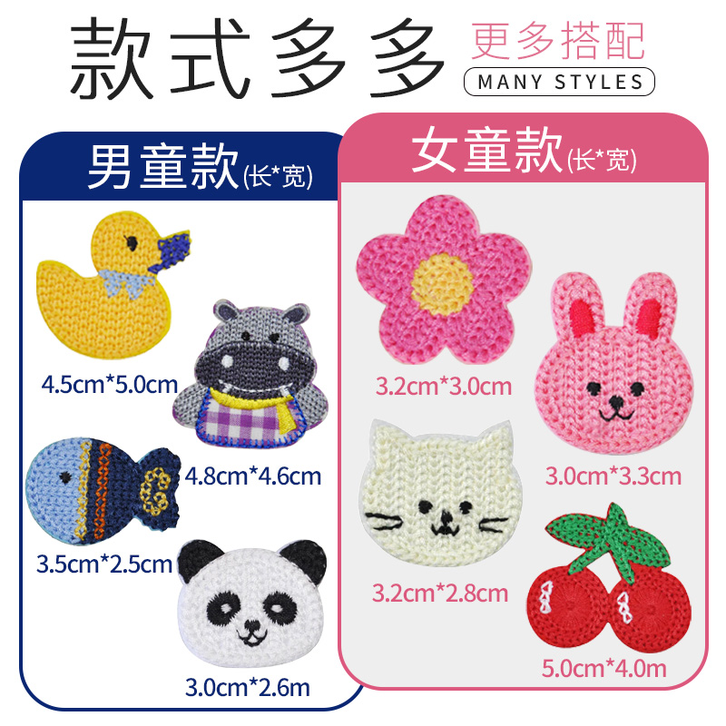 毛衣补丁贴带背胶儿童卡通图案刺绣破洞修补布贴衣服上 饰 贴花装