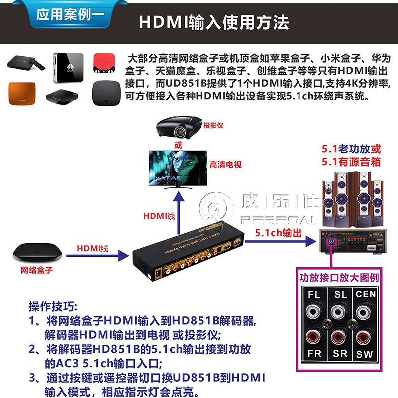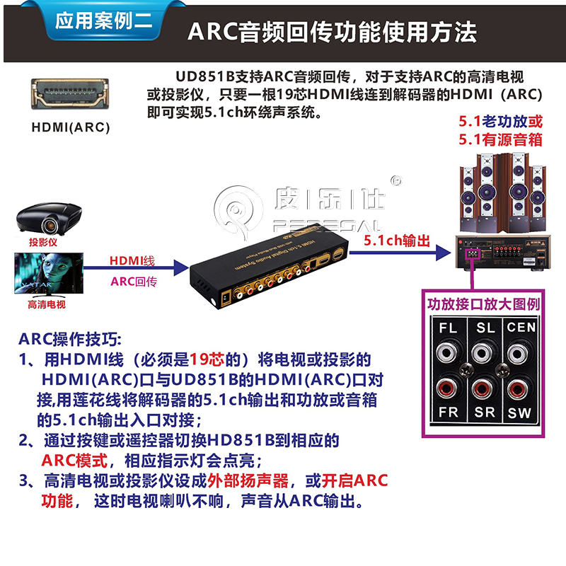 HDMI4k 器转5.1环绕音响功放U盘播放带蓝牙适用蓝光机PS4海信小米电视音频分离器 ARC光纤同轴AC3杜比DTS解码