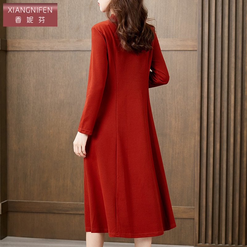橘红色中长款 新款 裙子12788 打底针织连衣裙2025秋季 罗衣亮丝修身