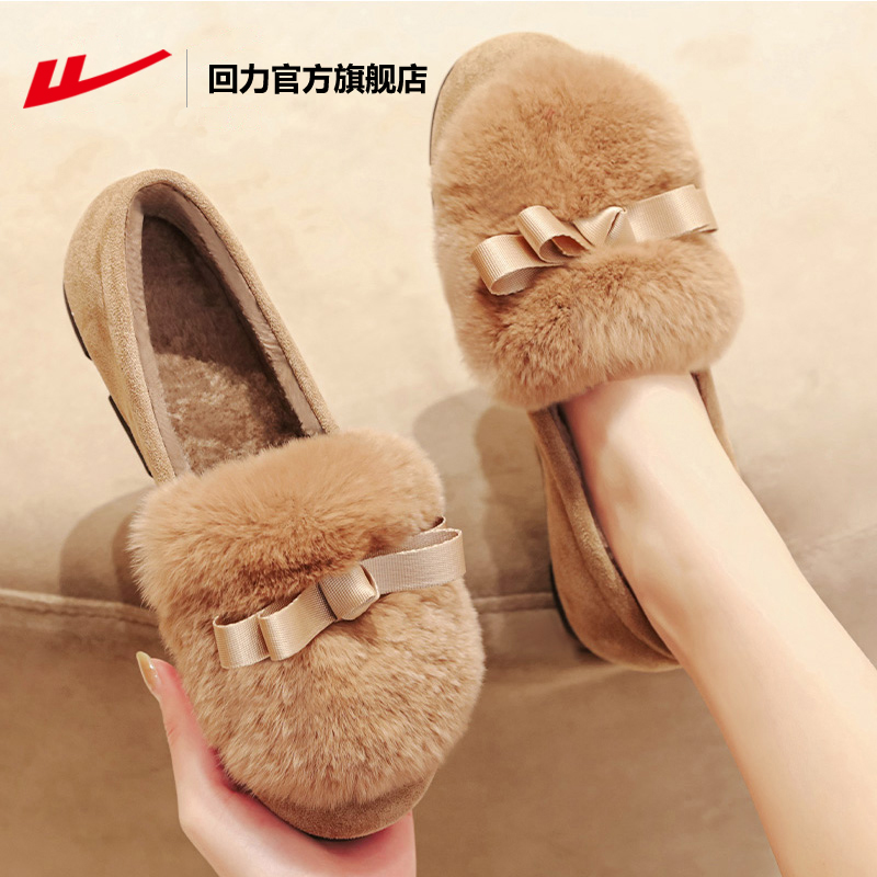 女一脚蹬冬季 毛毛鞋 加绒外穿 女2025秋冬新款 回力官方旗舰店豆豆鞋