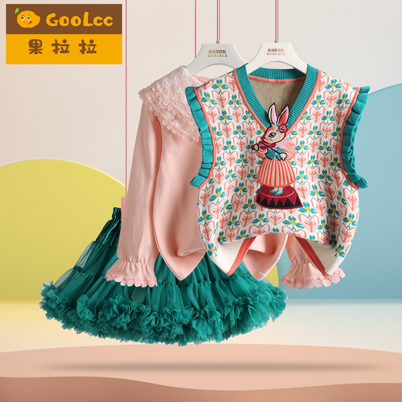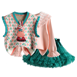 三件套女宝宝冬季 儿童tutu裙针织马甲衬衫 裙子春秋装 公主女童套装
