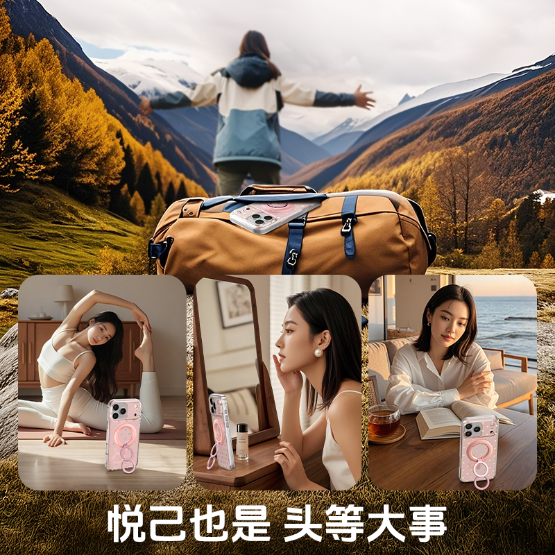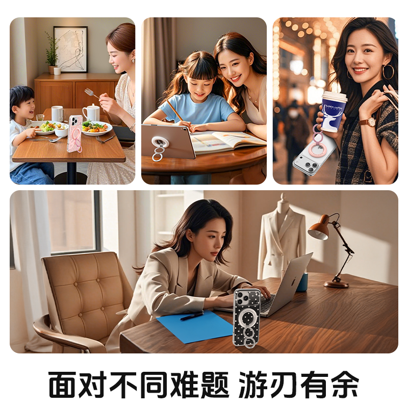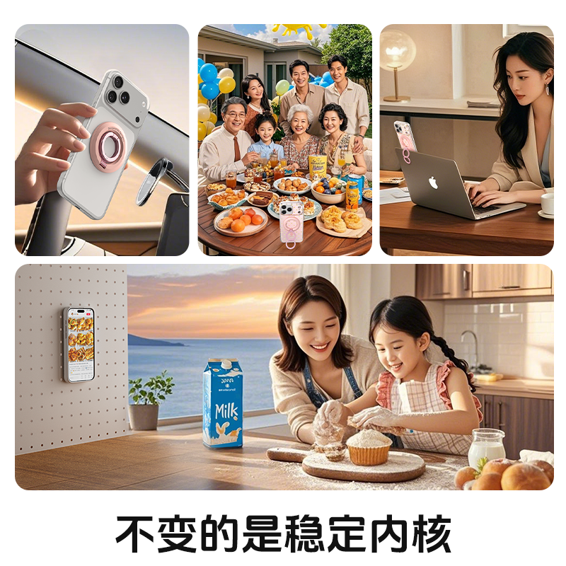 升维双环磁吸手机支架吸磁magsafe双面指环扣背贴桌面便携拍照甜甜圈适用于华为苹果iphone16 17Promax电动车