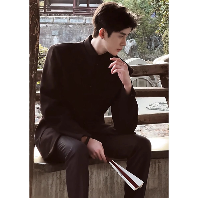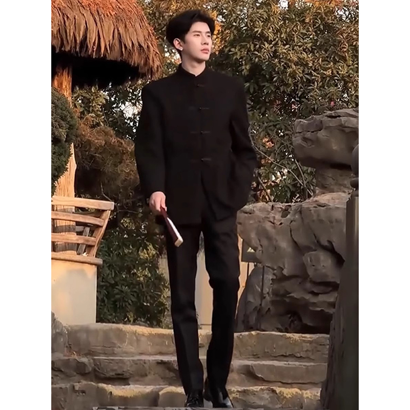 高端痞帅西装 新中式 国风盘扣垫肩中山装 西服订婚礼服穿搭套装 男装
