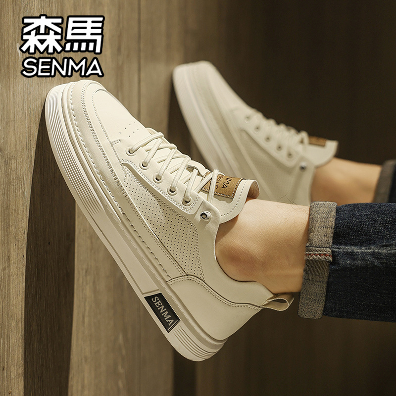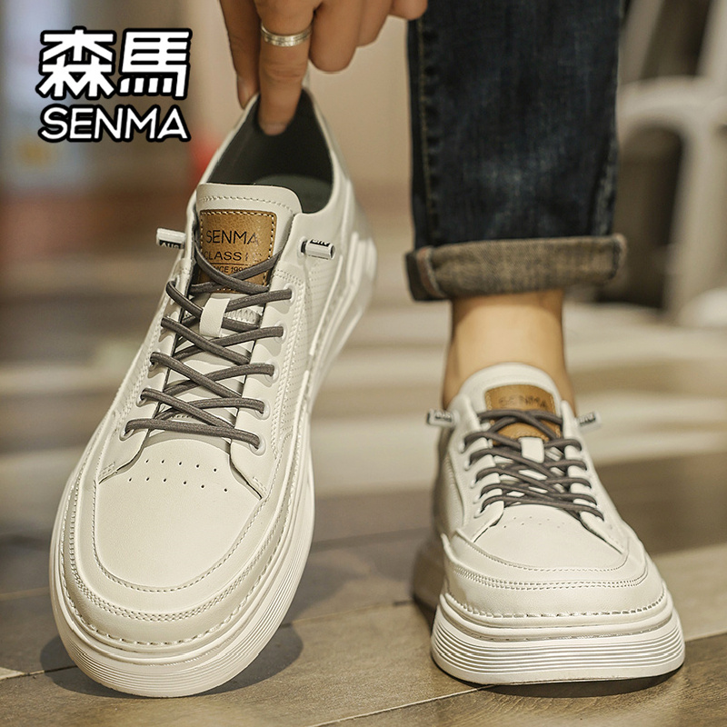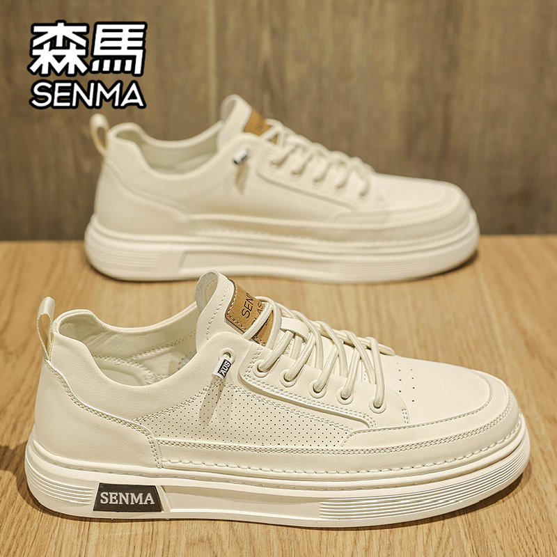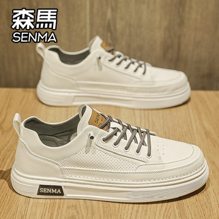 秋季 潮流百搭小白潮鞋 一脚蹬皮鞋 运动休闲白色板鞋 子 男士 森马男鞋