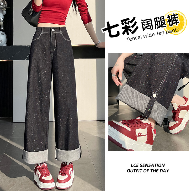 高腰直筒拖地裤 卷边阔腿牛仔裤 显瘦垂感休闲窄版 2025新款 女春秋季