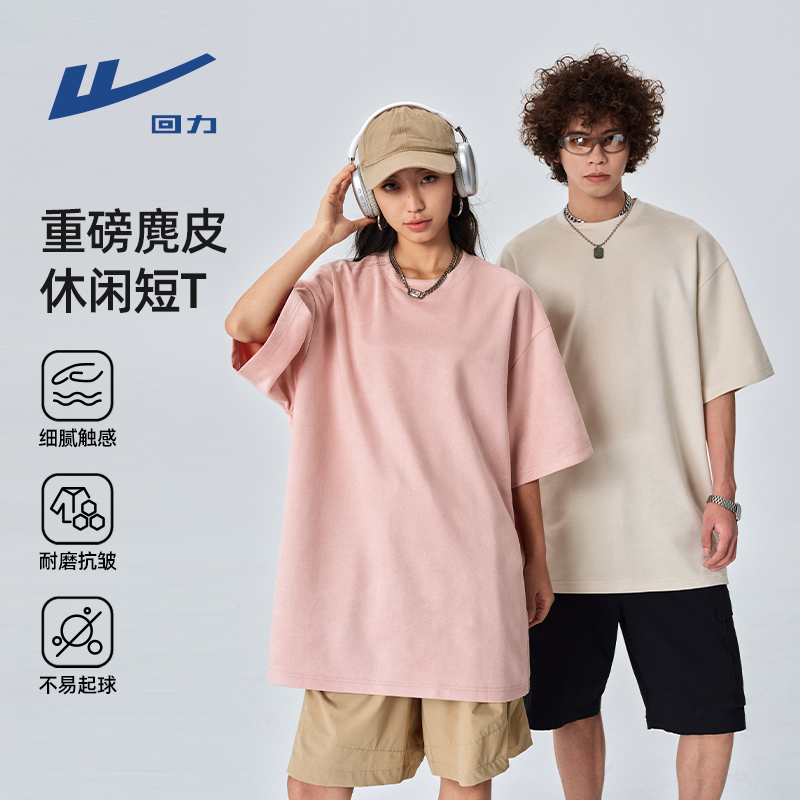 体恤青少年男生潮牌半袖 回力重磅麂皮绒短袖 美式 夏季 衣服S T恤男款