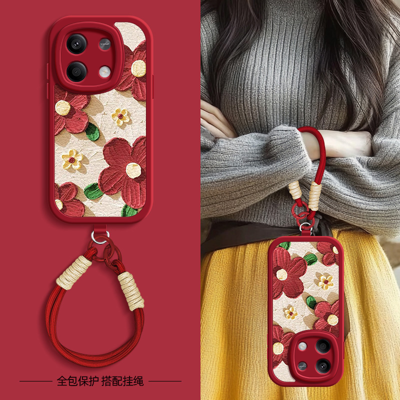 turbo3 浮雕花瓣适用红米note14手机壳note13pro 7春夏斜挎挂绳女款 12小米redmi小羊皮11Tpro新款
