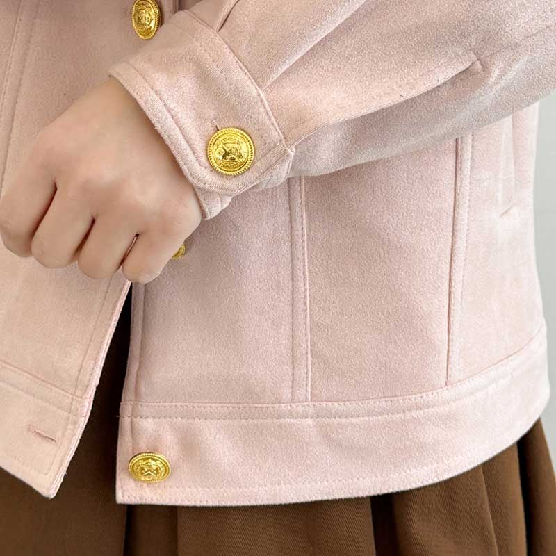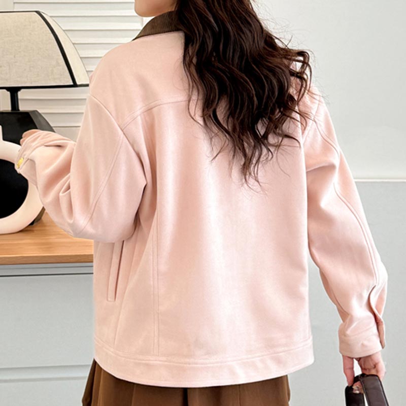 学院风休闲夹克胖mm别致宽松开衫 粉色麂皮绒工装 外套2025春秋新款