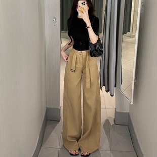 春秋季 女2025新款 高腰宽松显瘦弯刀裤 小个子裤 美式 子迷彩裤 牛仔裤