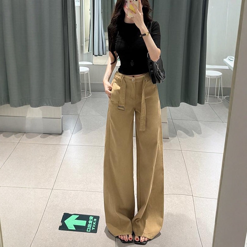 含棉腰带撞色明线阔腿裤 Vero 新款 女25秋季 百搭老钱风 Moda牛仔裤