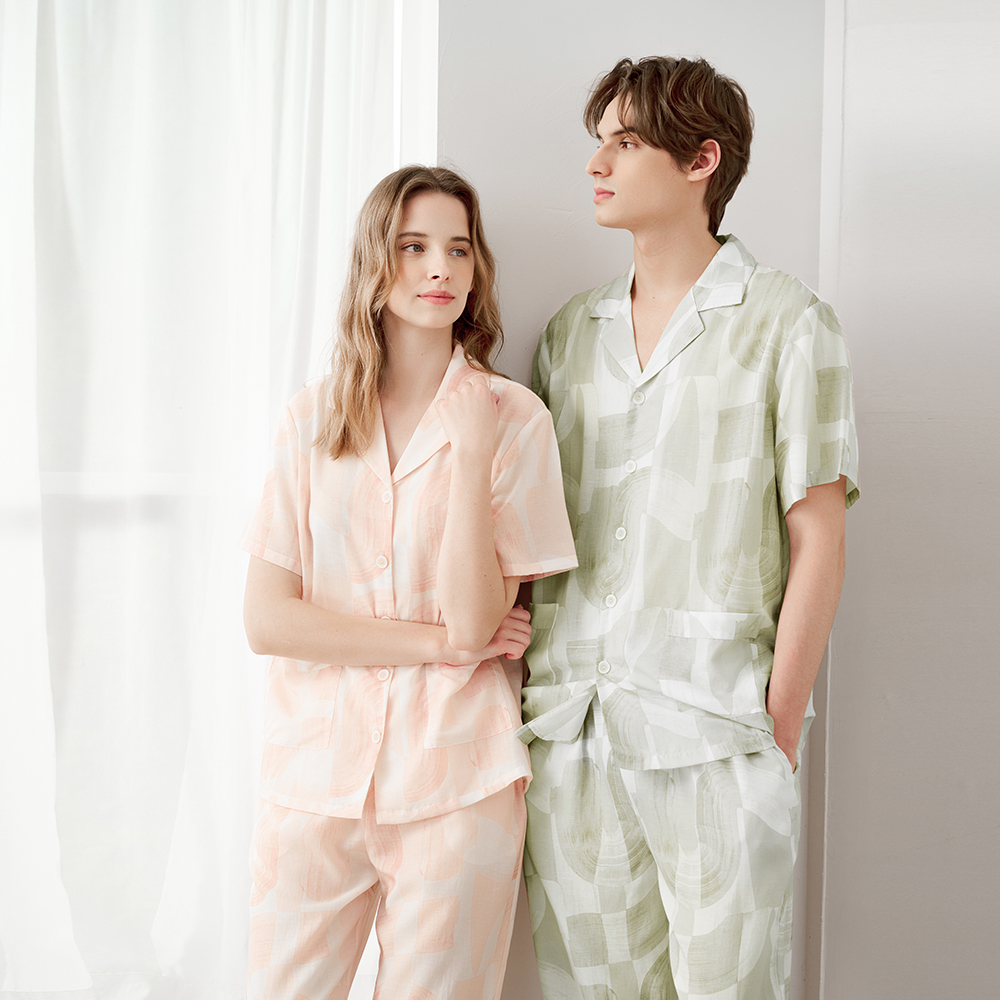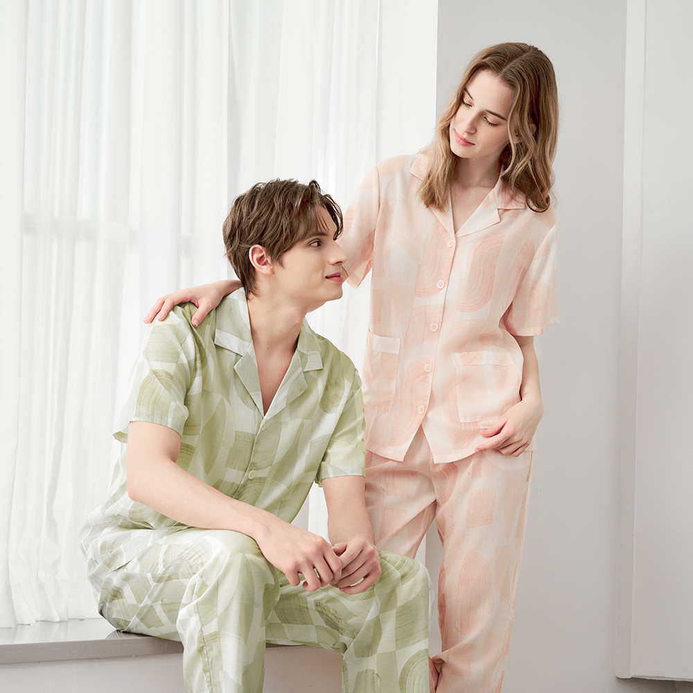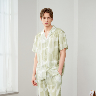 休闲家居服套装 美标睡衣女款 梭织莱赛尔情侣短袖 夏季 男 2025新款