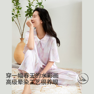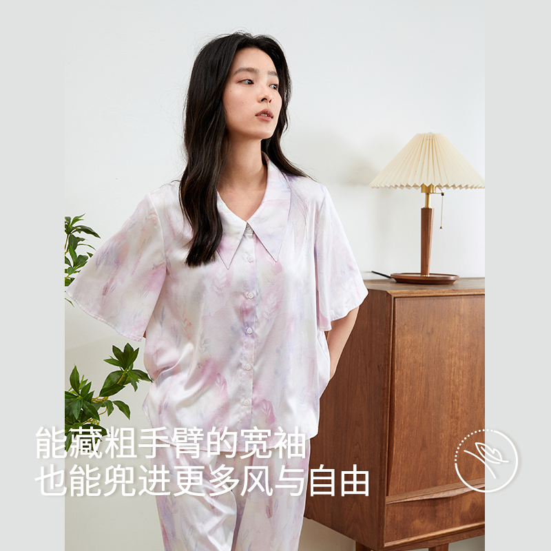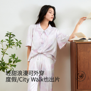 新品 女士家居服2025年夏季 仿真丝薄款 音儿印花高级感冰丝睡衣女款