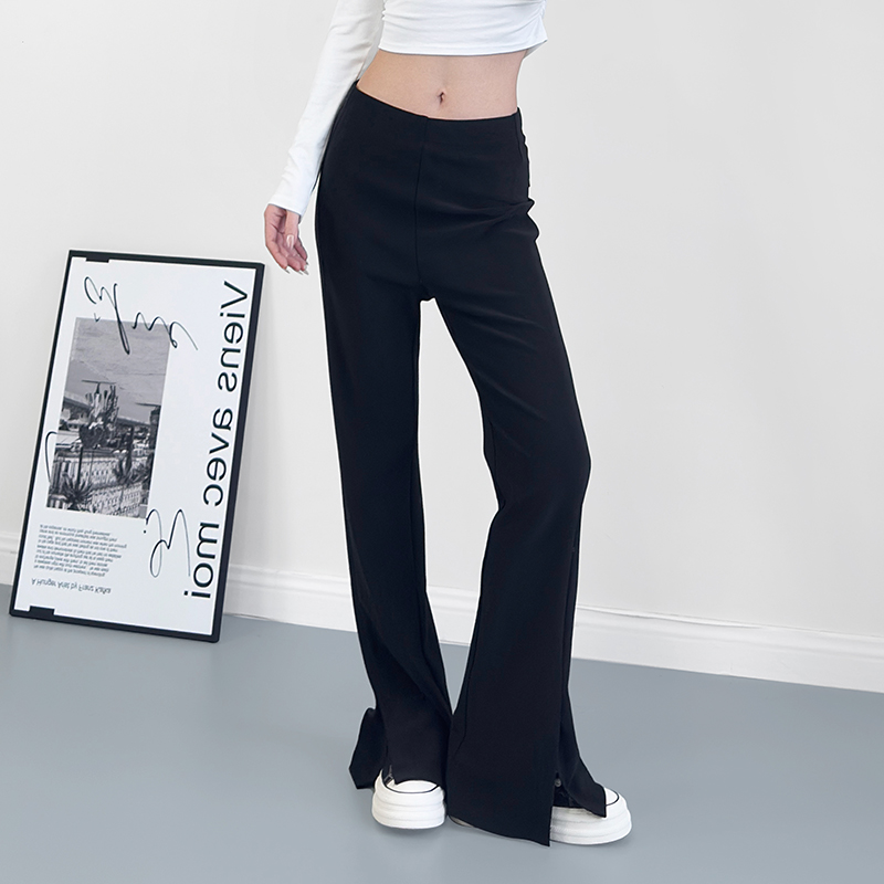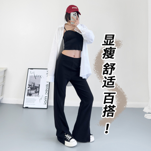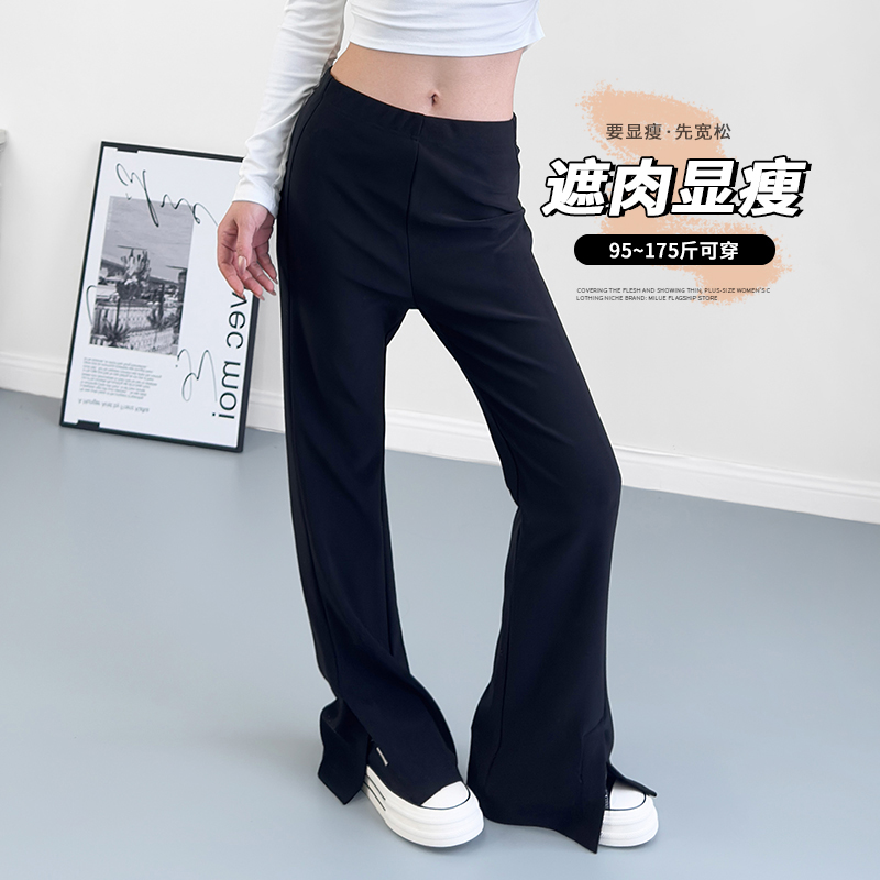 宽松显瘦设计感休闲阔腿裤 大码 新款 女2025春季 胖mm开叉微喇叭裤
