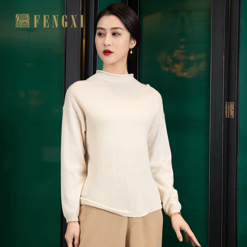 高级感上衣宽松打底针织衫 圆领100%纯山羊绒衫 女高端毛衣秋冬新款