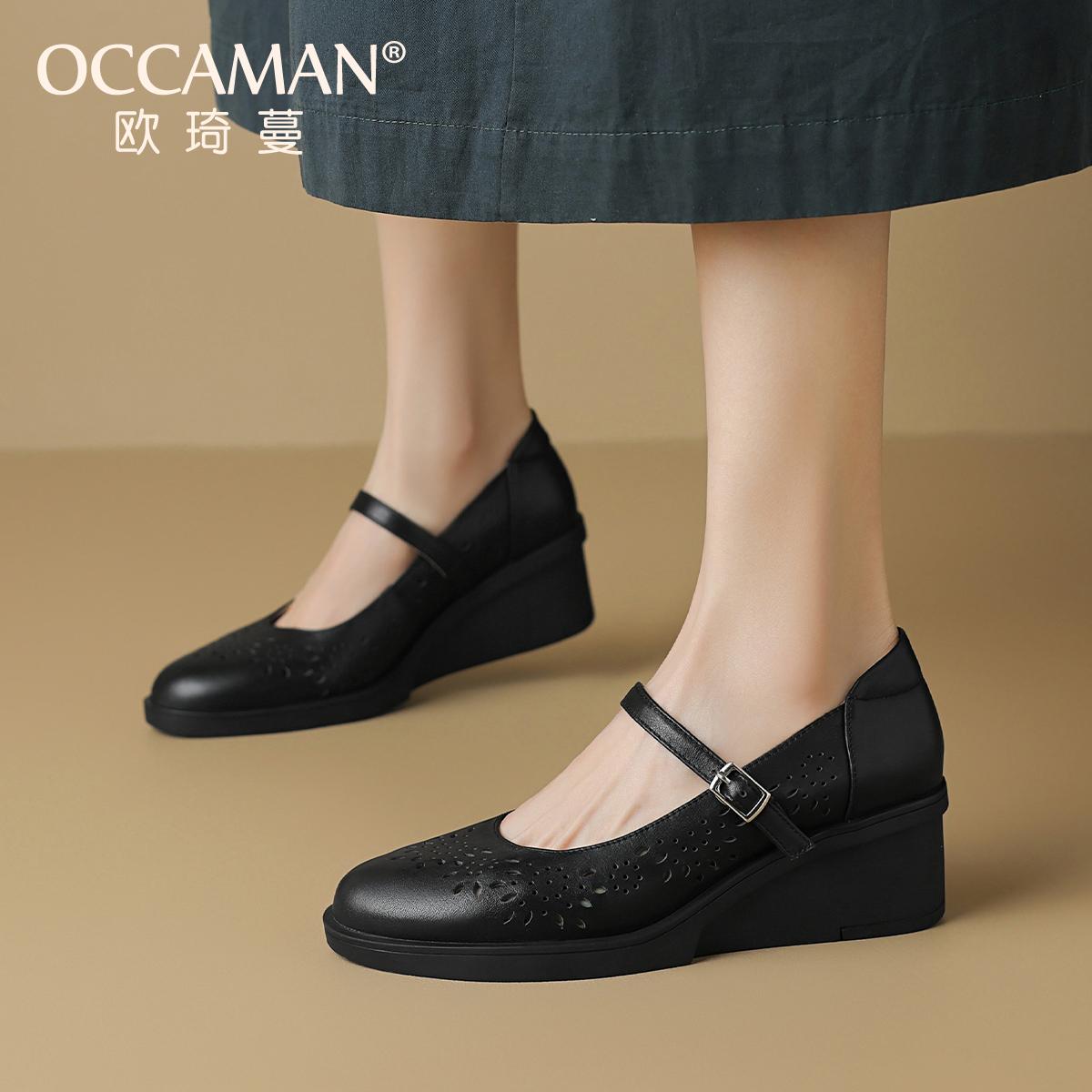 仙女风瓢鞋 秋季 浅口百搭中跟奶奶鞋 大码 真皮单鞋 女鞋 粗跟2025新款
