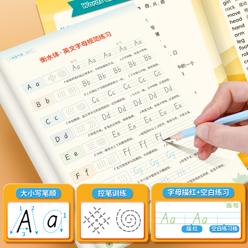 2025春新版 衡水体新交际英语一年级下册练字帖一年级起点课本同步手写体字帖26个英文字母小学生专用字母单词练字本 外研版