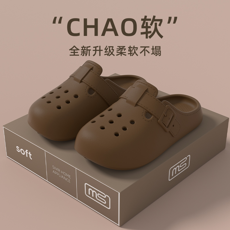 海边家居室内防滑包头凉拖鞋 踩屎感洞洞鞋 厚底外穿时尚 新款 女夏季