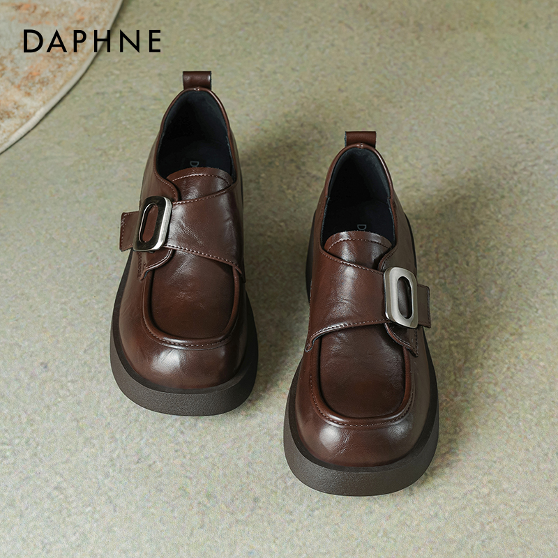 厚底增高大头英伦风小皮鞋 达芙妮2025超火乐福鞋 女软底不累脚单鞋