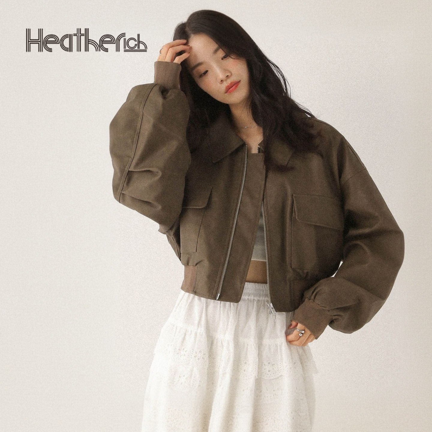 宽松气质流行短款 时尚 皮衣146960 新款 Heatherich外套女2025秋季