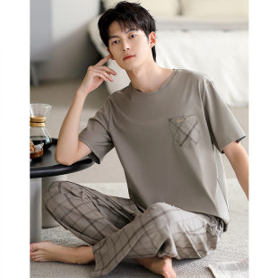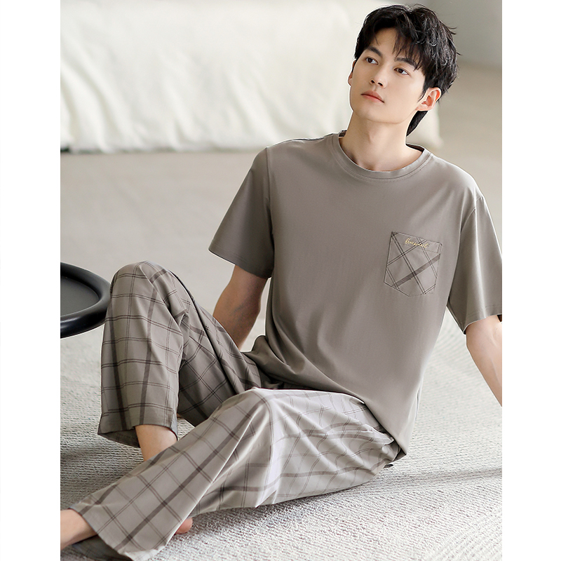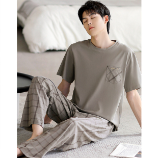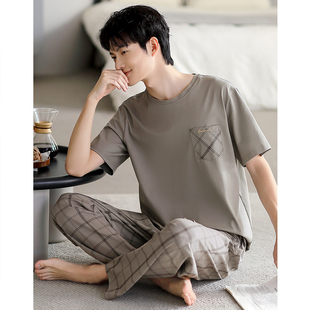 长裤 男款 大码 夏季 休闲家居服 夏款 纯棉短袖 半袖 睡衣男士 春夏天薄款
