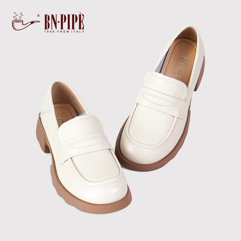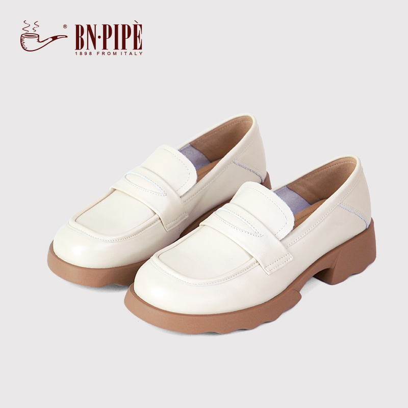 真皮软底不累脚女鞋 轻便舒适白色妈妈鞋 女乐福鞋 百年烟斗2025新款