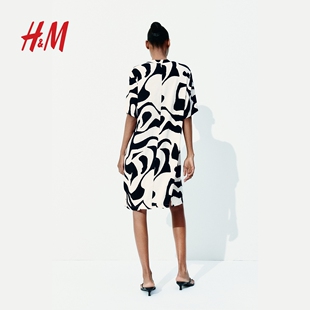 中式 新款 收腰立领碎花度假风裙1214786 无领连衣裙2025夏季 HM女装