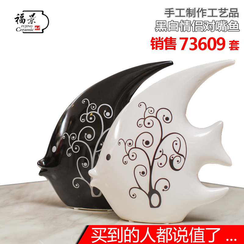 家居饰品客厅装 简约现代电视柜工艺品摆设 饰摆件创意情侣鱼礼物