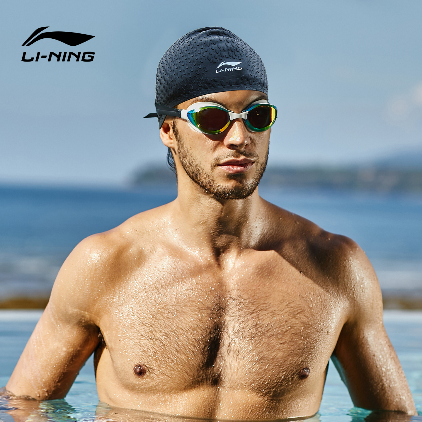 李宁泳帽男款 游泳布料黑 硅胶防水加大成人大头围不勒头女专业男士