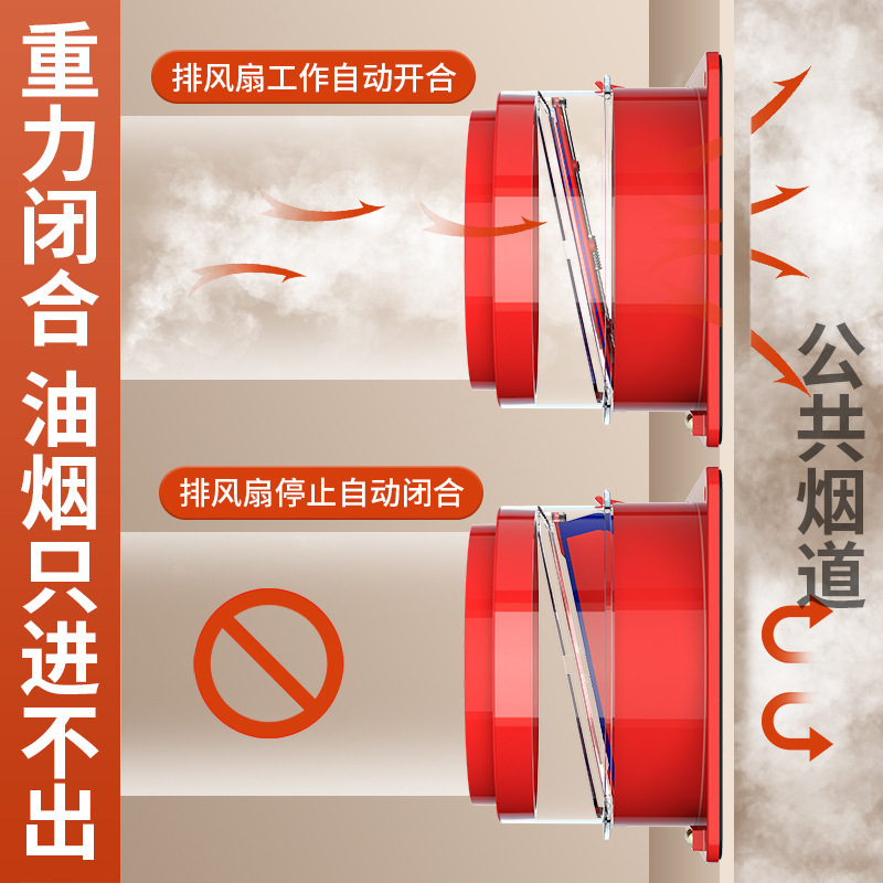 烟道止逆阀厨房抽油烟机通用红色abs逆止阀管道防烟出风排气通风
