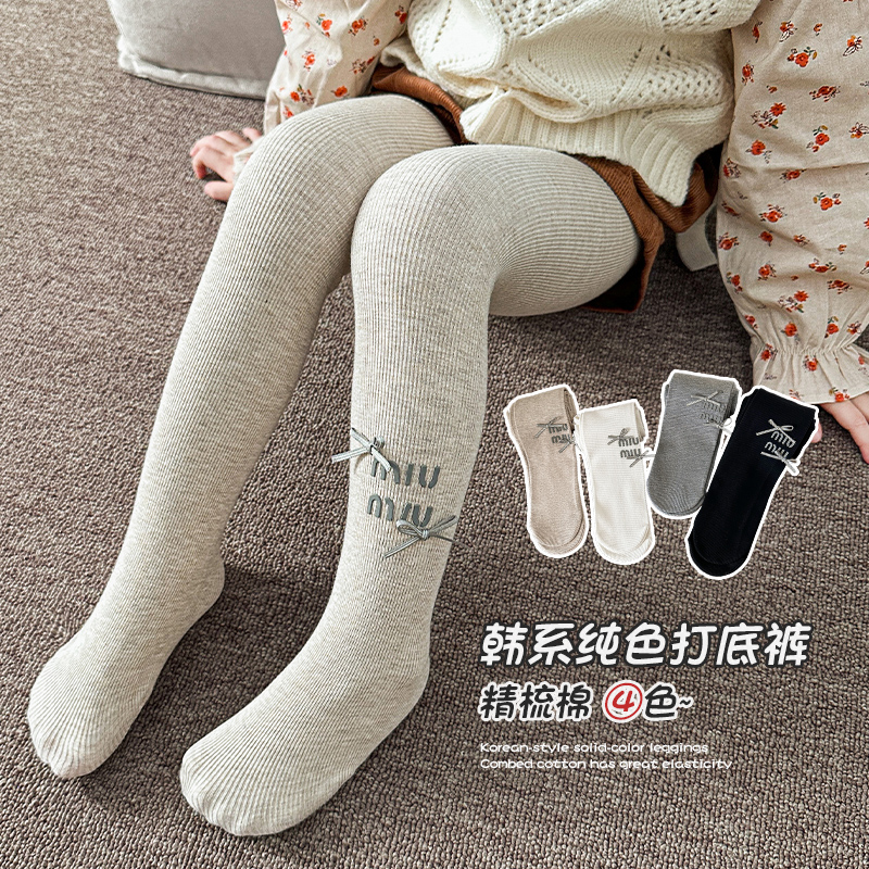 儿童高腰洋气打底裤 女童时尚 宝宝蝴蝶结打底袜裤 袜春秋款 外穿 连裤