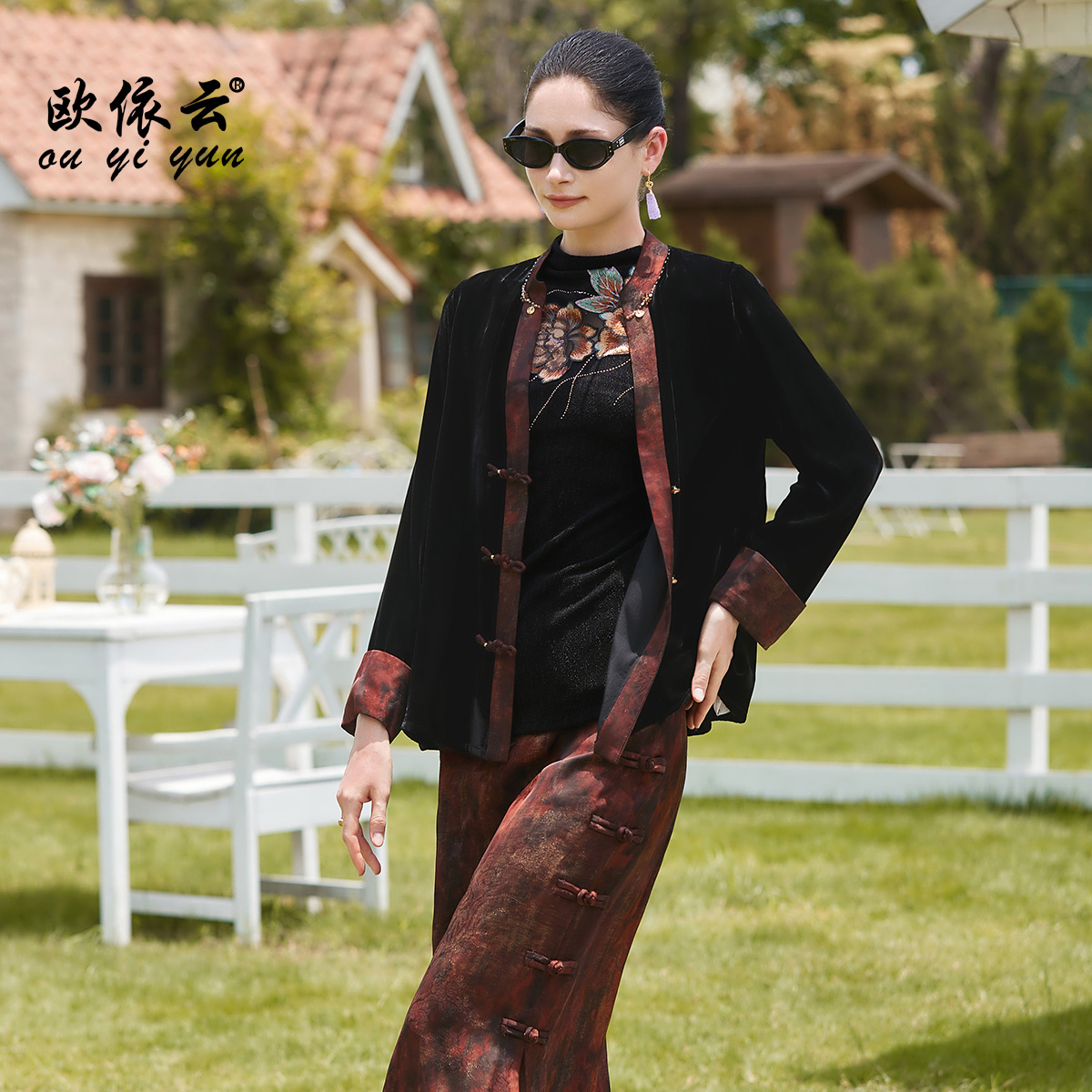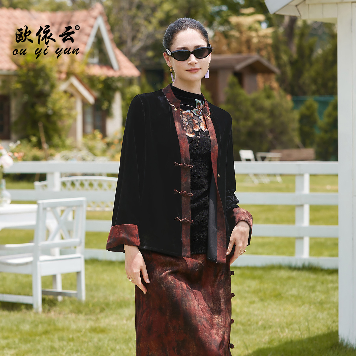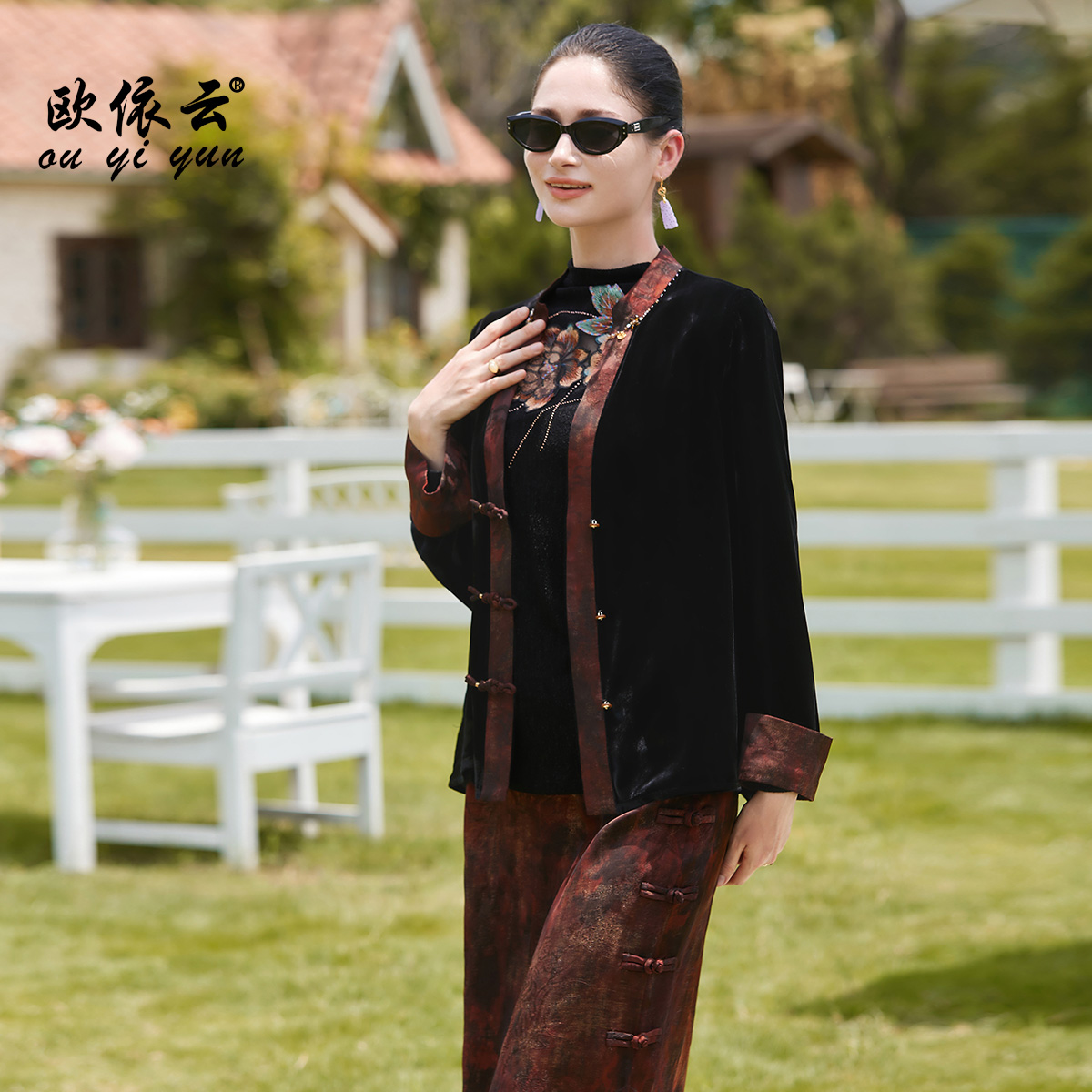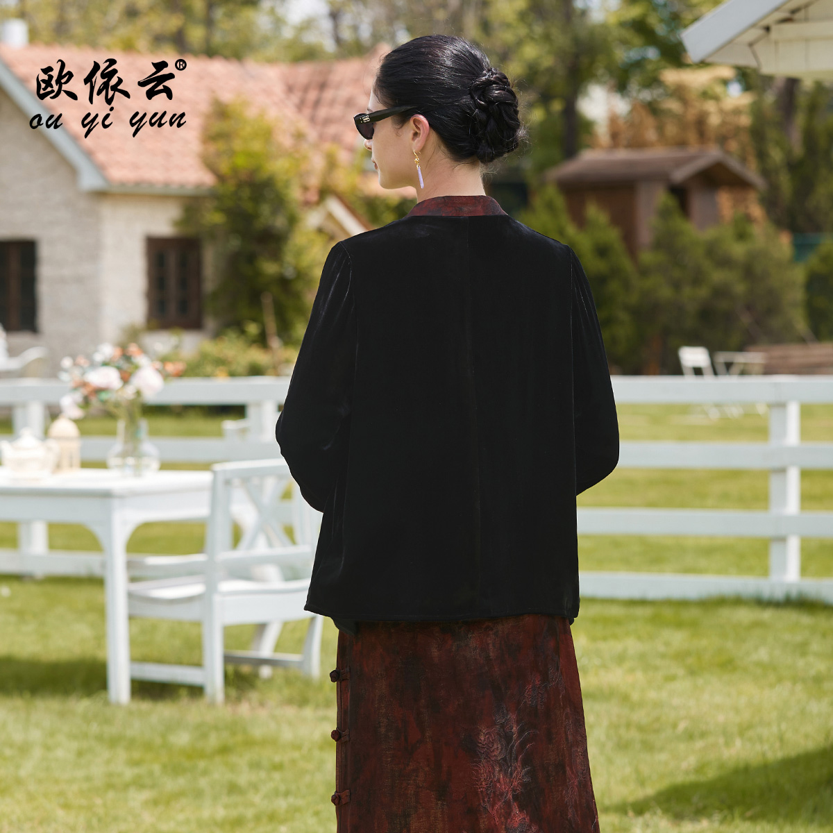 欧依云华丽气质桑蚕丝短外套女高贵洋气妈妈秋装 真丝上衣2025新款