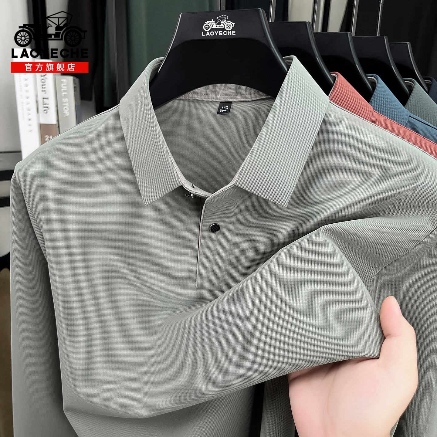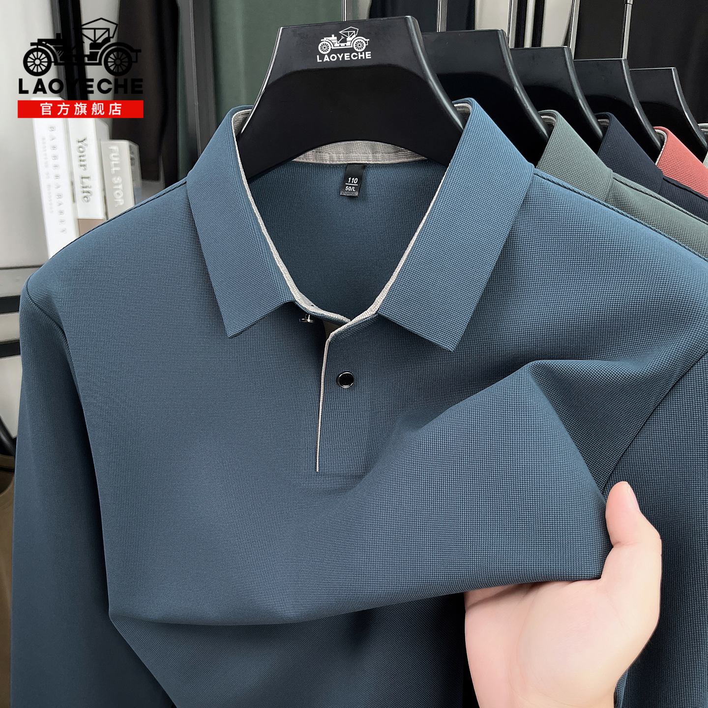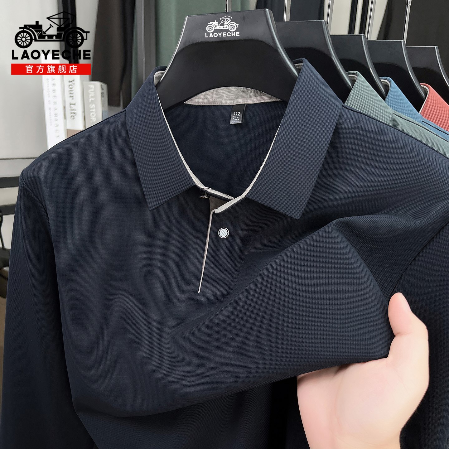 男纯色百搭秋装 运动休闲拼接长袖 领polo衫 衬衫 上衣 t恤男2025新款
