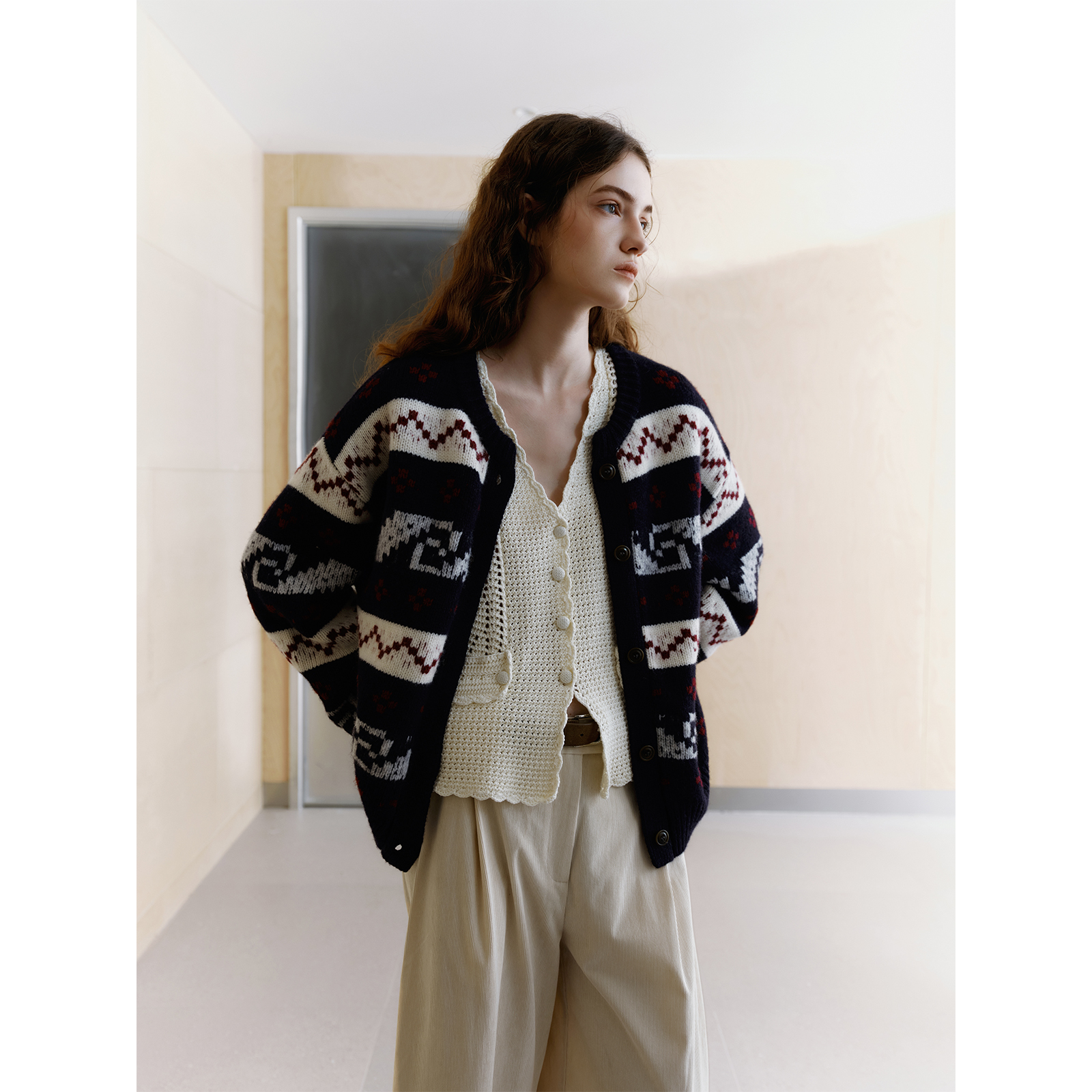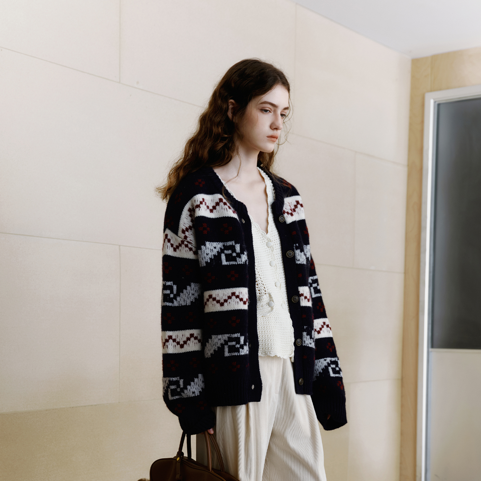 外套 显瘦软糯绵羊毛混纺毛针织衫 IAmMIX27秋冬圆领毛衣开衫 女短款