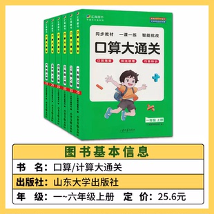 2026新版 社 小学数学口算大通关计算大通关一二年级三四五六年级上册人教同步教材口算笔算梳理思维特训课时练汇海图书山东大学出版