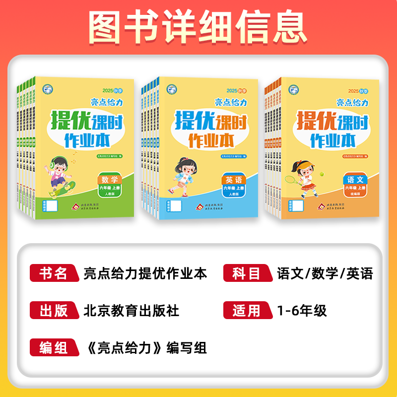 教材同步习题训练天天练课课练课后巩固辅导书 统编版 2025秋亮点给力提优作业本小学一二三四五六年级上册语文数学英语人教版 北师版