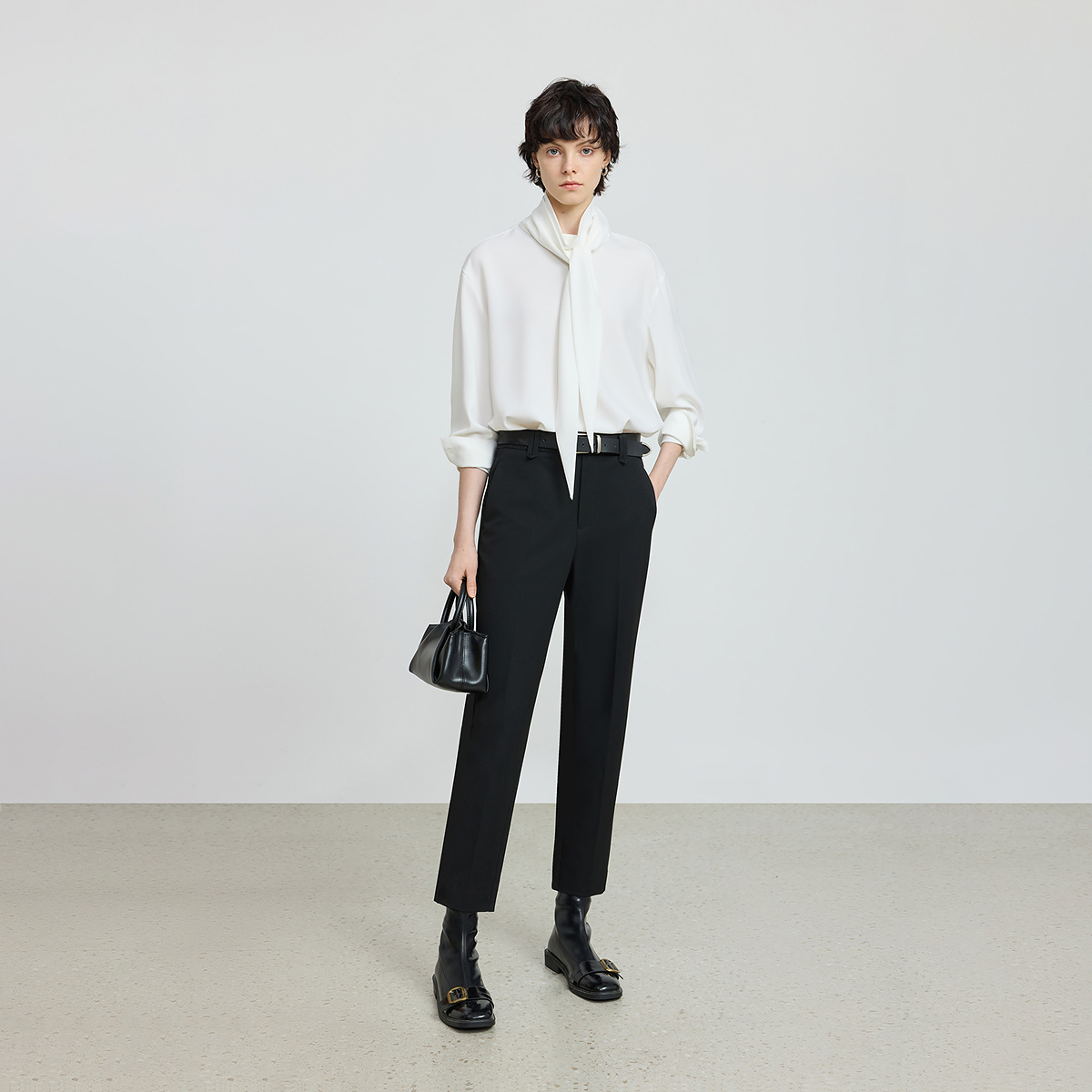 LILY2025冬新气质商务通勤松紧高腰加绒九分黑色锥形休闲西装 女 裤