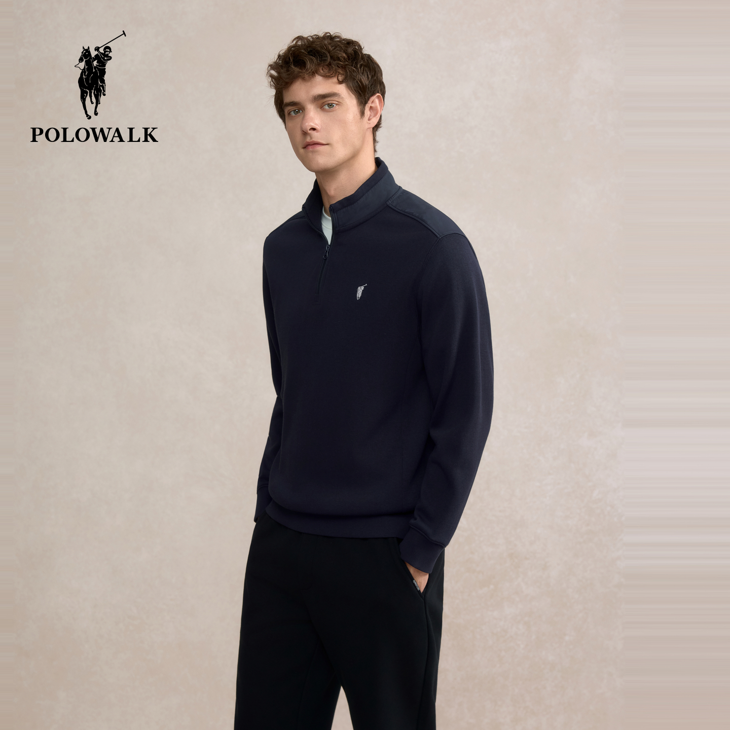 翻领男生藏青色外套 美式 CHINISM赤尘 幸运之符POLO领卫衣男新款