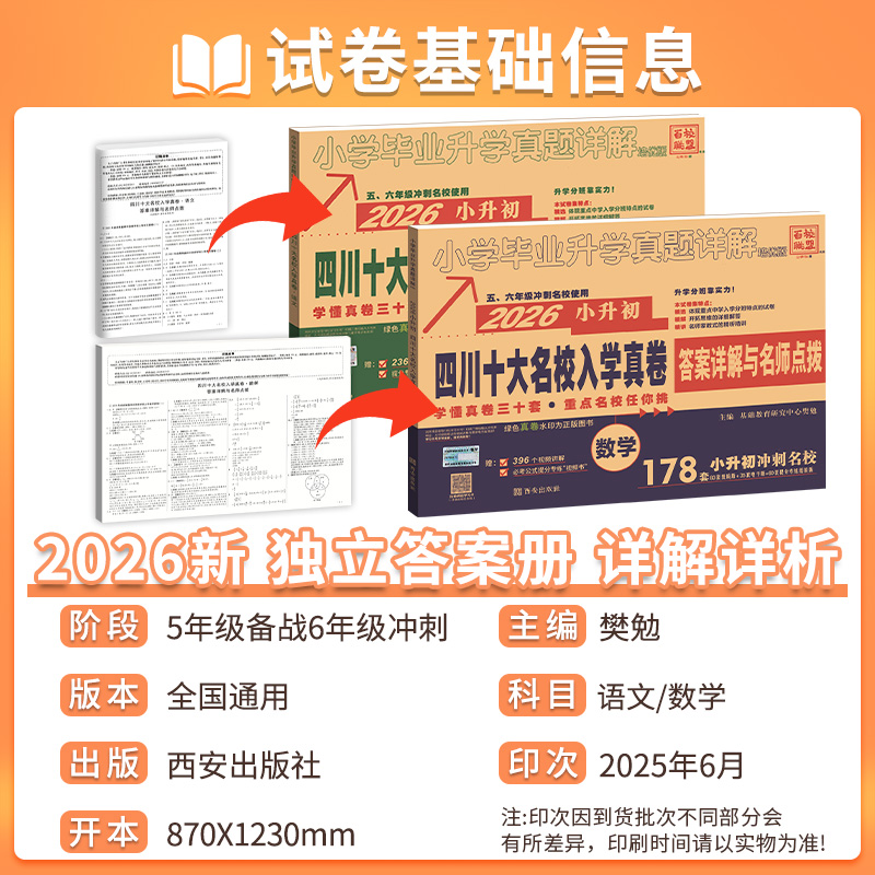 2026四川十大名校招生入学真卷小升初总复习语文数学英语试卷成都市六年级初一分班考试卷百校联盟重点真题卷成都发货专版