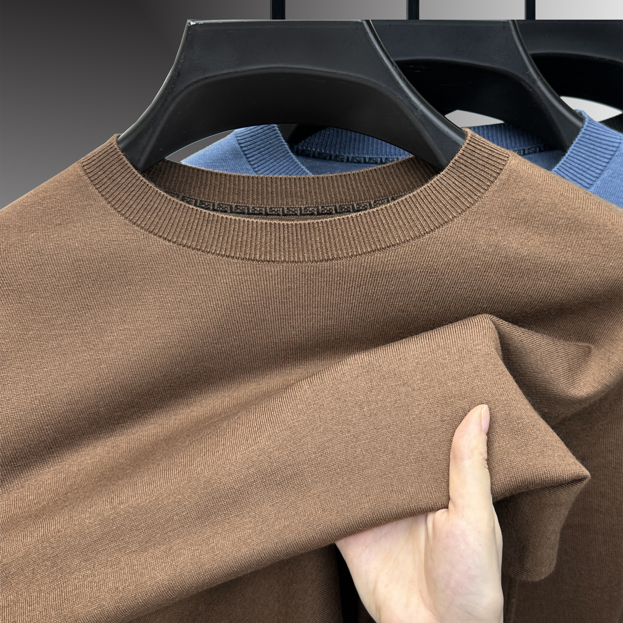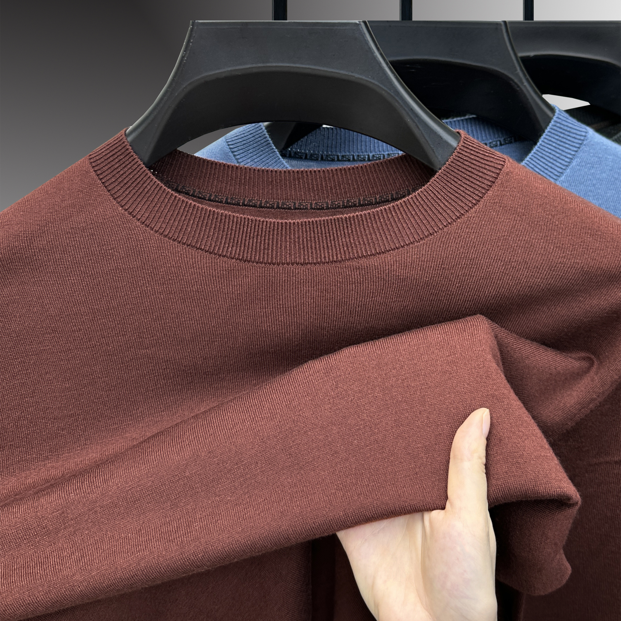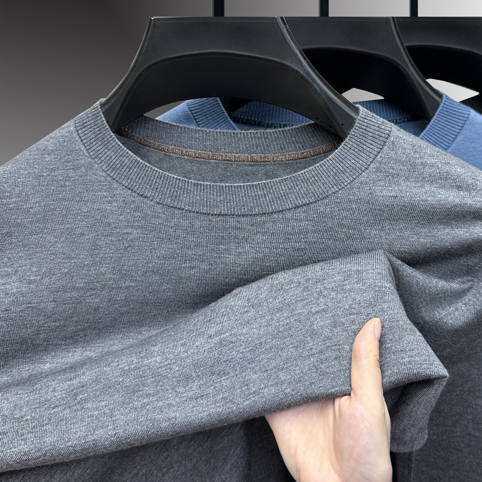 薄款 中年男士 圆领打底衫 t恤桑蚕丝含羊毛针织衫 毛衣 长袖 秋冬男装
