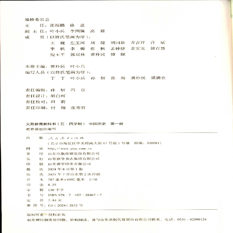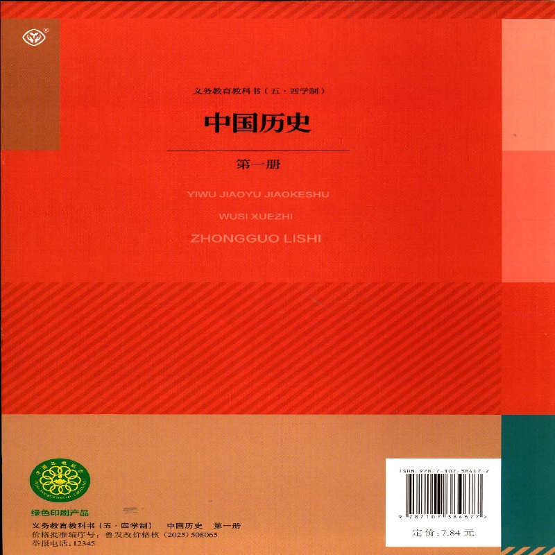 2025五四制6六年级上册中国历史第一册课本初中教材教科书配人教版 社 人民教育出版
