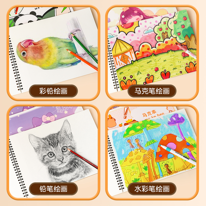 A4儿童素描本绘画本加厚120g克素描马克纸幼儿园专用小学生速写水彩铅笔涂鸦美术空白手绘硬纸板线圈本子定制
