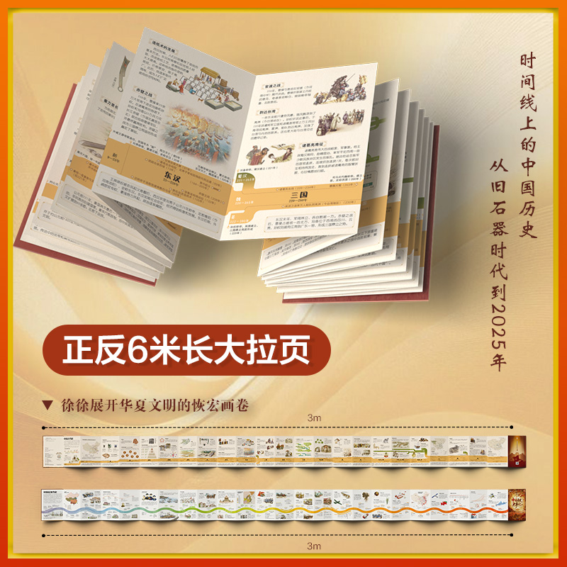 正反共6米大拉页 2025年中国历史大事记画卷 学生实用历史知识 中小学生考点速记 地图墙贴 古代近现代史时间轴地图 北斗官方