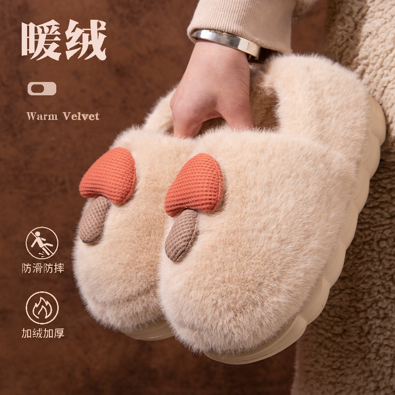 防滑厚底包跟室内家居月子保暖可爱毛毛棉鞋 孕妇棉拖鞋 女士秋冬季