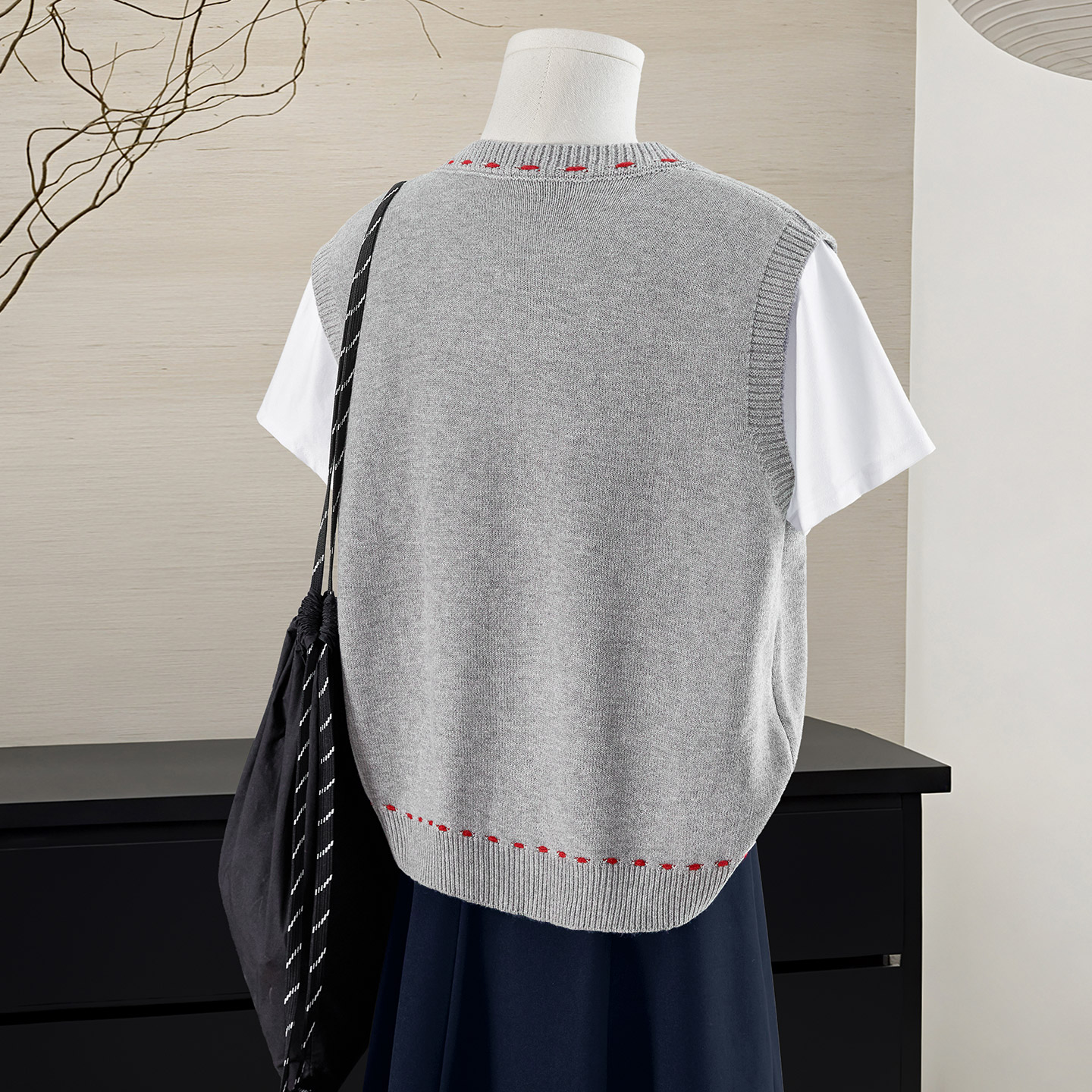 叠穿软糯上衣 毛衣开衫 圆领针织马甲女2025秋新款 圆领坎肩外搭无袖