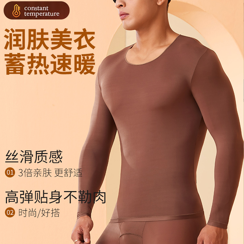 37度上衣冬季 男款 超薄无痕秋装 套装 隐形保暖内衣红色黑色 秋衣秋裤